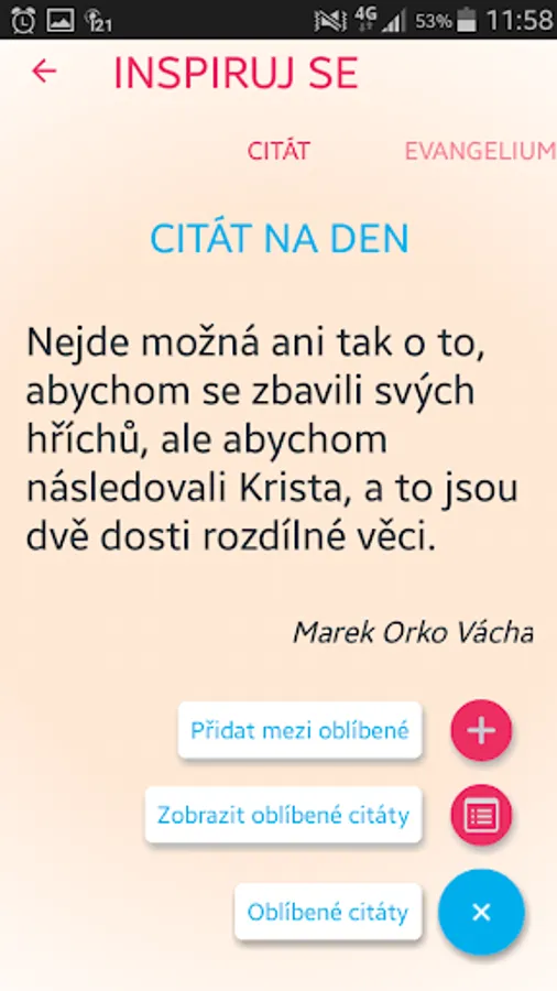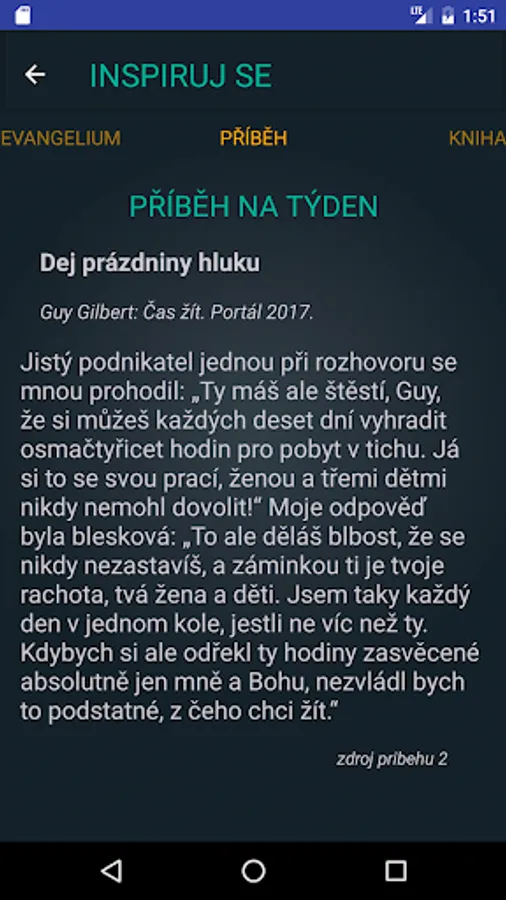 Start each day with a new inspirational quote (possibility to add a widget on the screen). Here you will discover the weekly Gospel passage for the current Sunday with a deepening commentary, a new story and an excerpt from the book, which is worth reading.