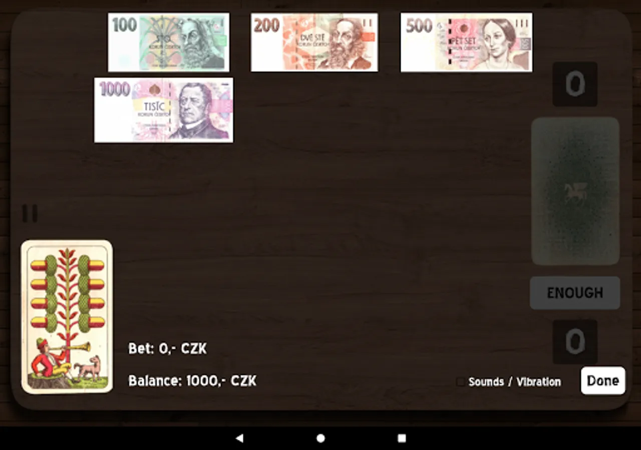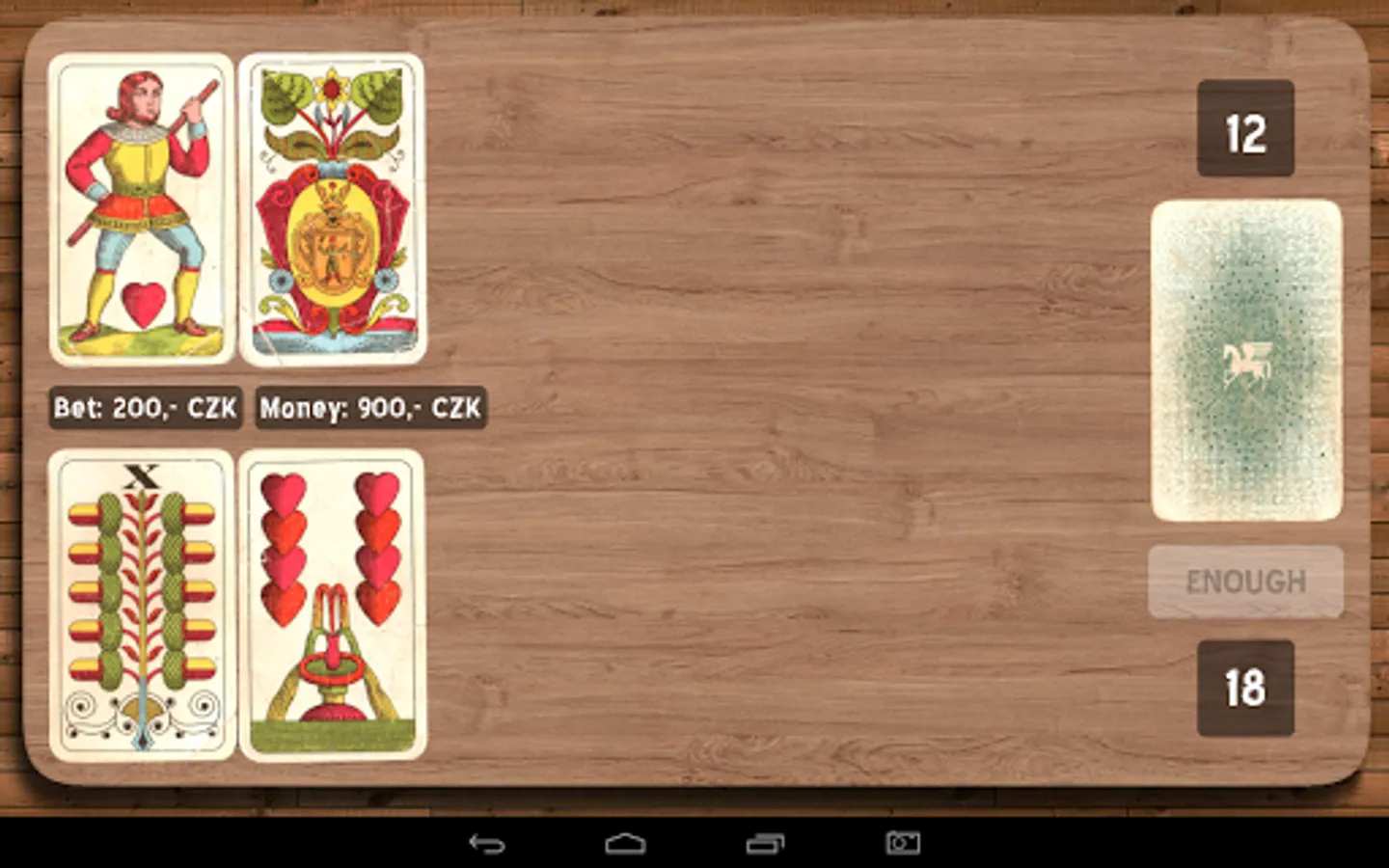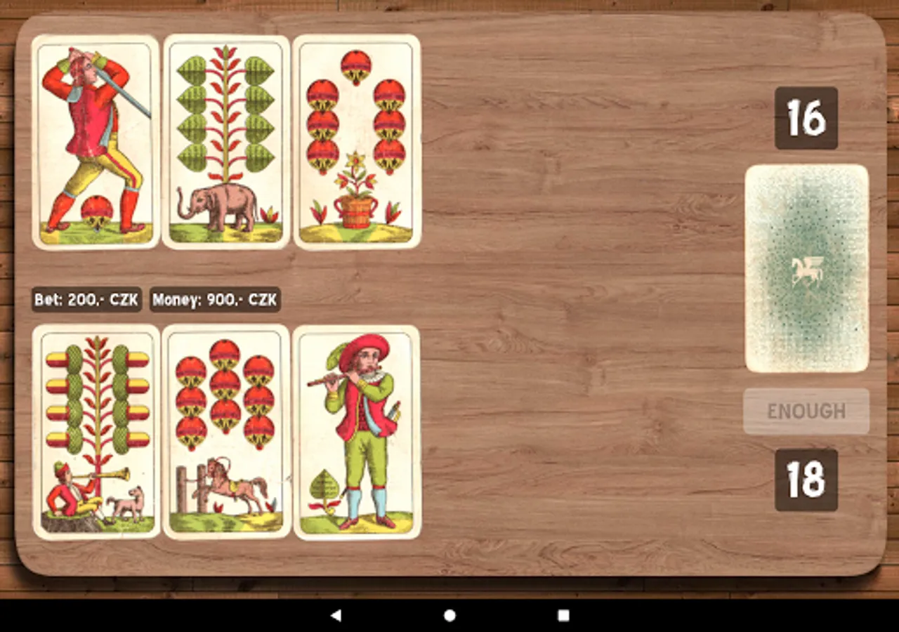 You play against Android. At the beginning of each round you will receive one card and then you have to bet something on. Android bets the same amount. After bet you continue by taking next cards from the deck until you reach the sum of 21 or at least