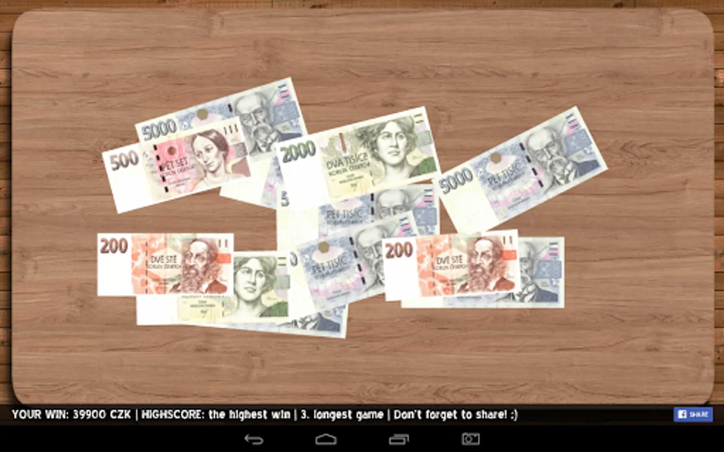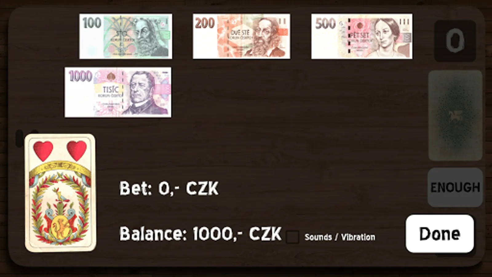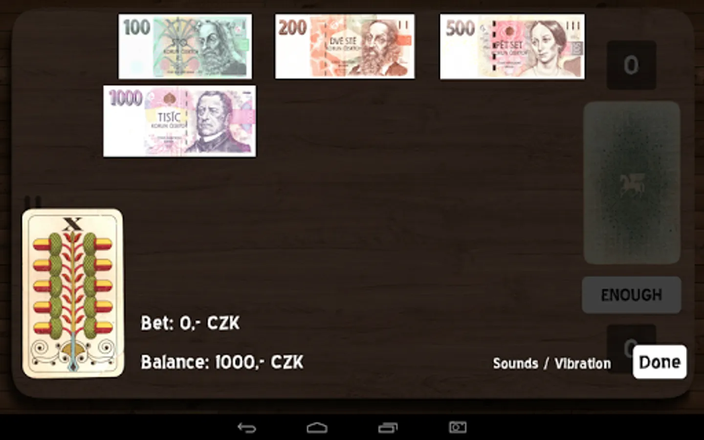 You play against Android. At the beginning of each round you will receive one card and then you have to bet something on. Android bets the same amount. After bet you continue by taking next cards from the deck until you reach the sum of 21 or at least