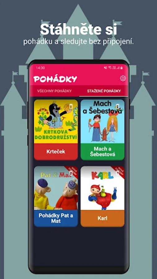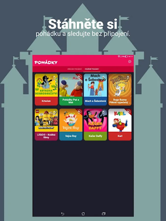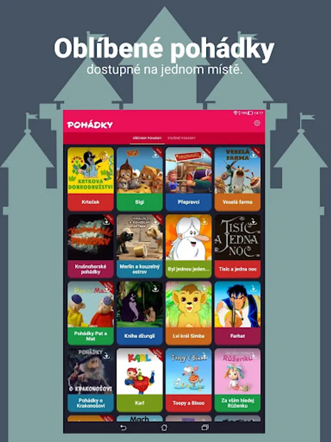 In the new fairy tale app from TV Seznam, favorite stories of bedtime story heroes, lullabies performed by famous personalities, and even Cool Games, a creative workshop supporting children's creativity, await you and your children. Fairy-tale adventures are not available because we regularly change their offer. The Tales app is free and lets you and your kids watch everything anytime, anywhere, regardless of your TV program.