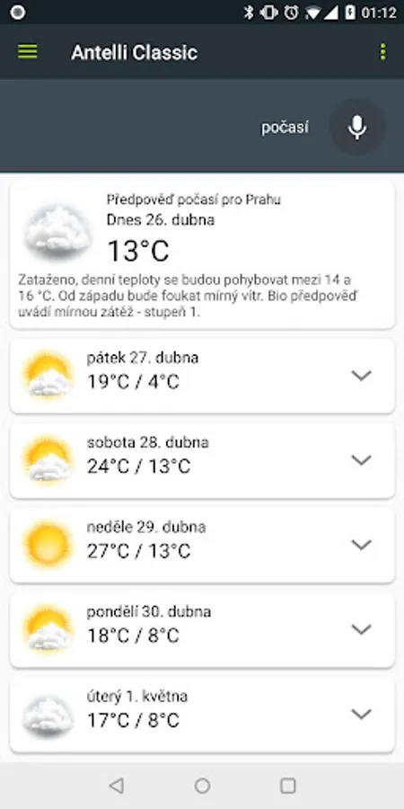 Weather forecast for more than 50 cities in the Czech Republic