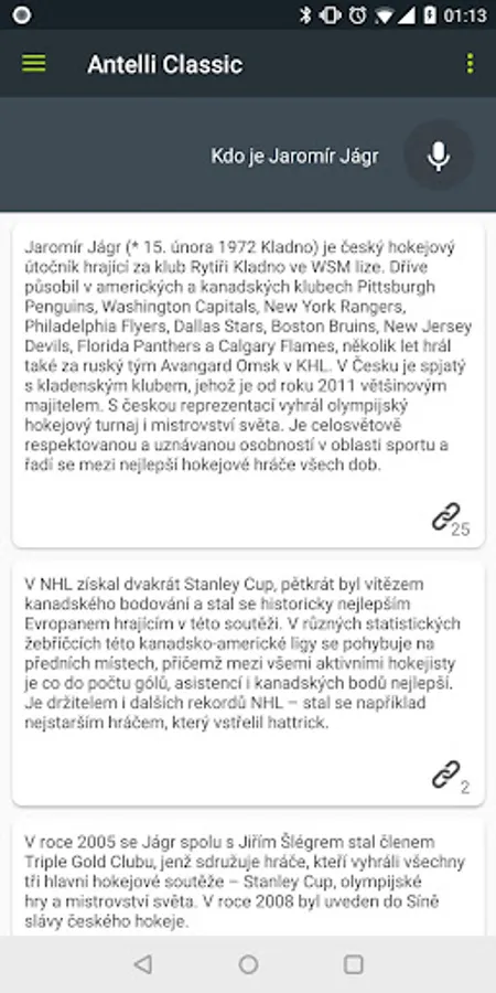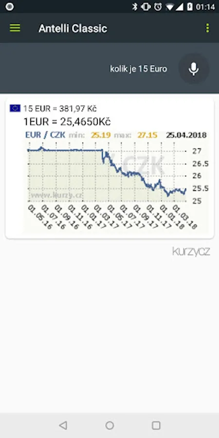 Czech voice assistant Antell will make daily search for information, from news, weather, sports scores, via a television program, movie information, program multiplexes, recipes for cooking, to kuzry currencies, commodity prices, and much more. Antell is that Czech Siri for Android. It is connected to the open Wikipedia, thanks to the huge amount of knowledge. Before use, be sure to read the help, where you will learn Antell perfectly controlled and exploited to the fullest of its capabilities.