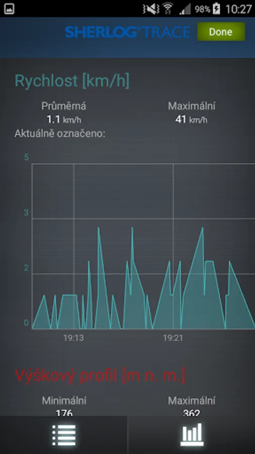 - Tracks - This modules gives you list of tracks of a selected vehicle of the last 30 days. You can see the details when selecting the track. You can also edit the track or see it on a map and show charts of speed, height profile, fuel usage and engine speed.