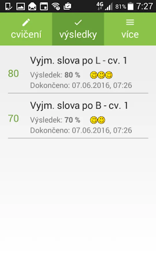 1) The application for installing your cell phone of one who has Czech practice - usually a child. If you do not send the results of the exercise, it is everything and you can start practicing. The results, averages and all the essentials you'll see on your phone.