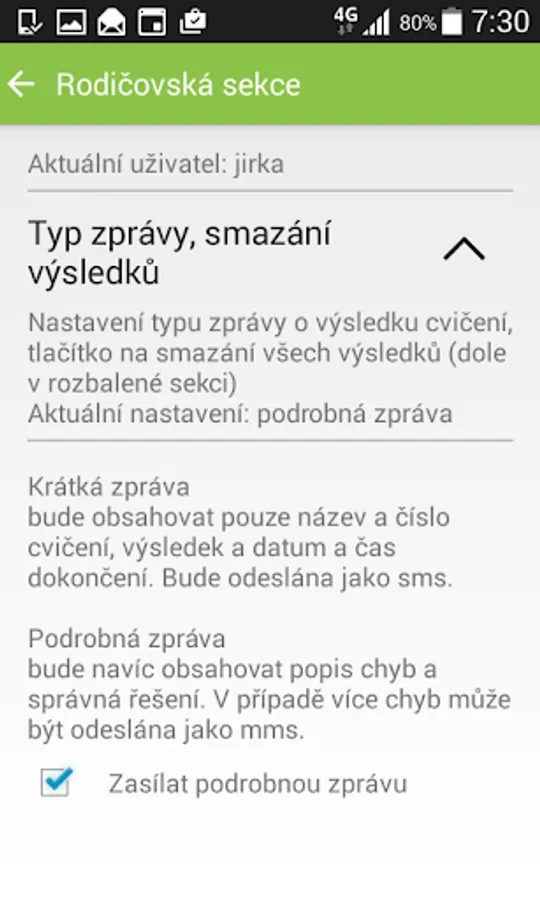 - Parent (grandparent, lecturer ... numbers for reporting can be entered unlimited number) always has an overview of how the practice runs.