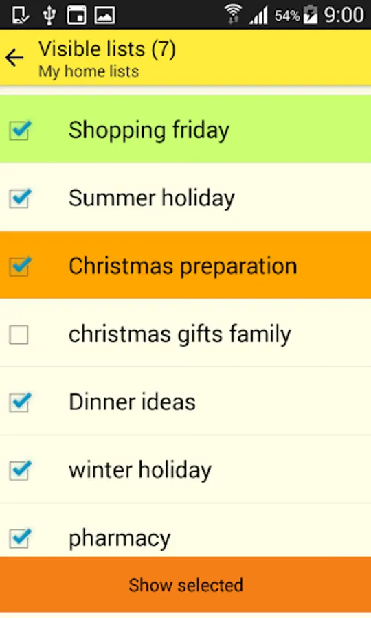 Ready! You can apply this at preparing of Christmas or family celebration.You always have your lists on hand a you remember all you can need. You never neet to create them again and you not tick many times ticked items. Lists you do not need you hide simply.