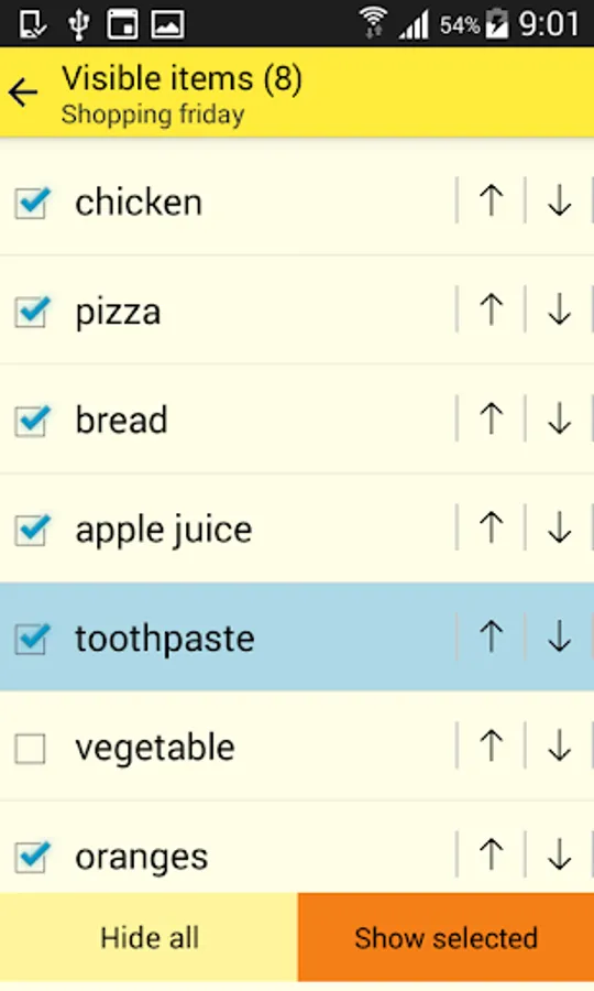 Variant: You can hide all items and gradually throughout the week to display everything you need.