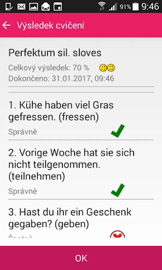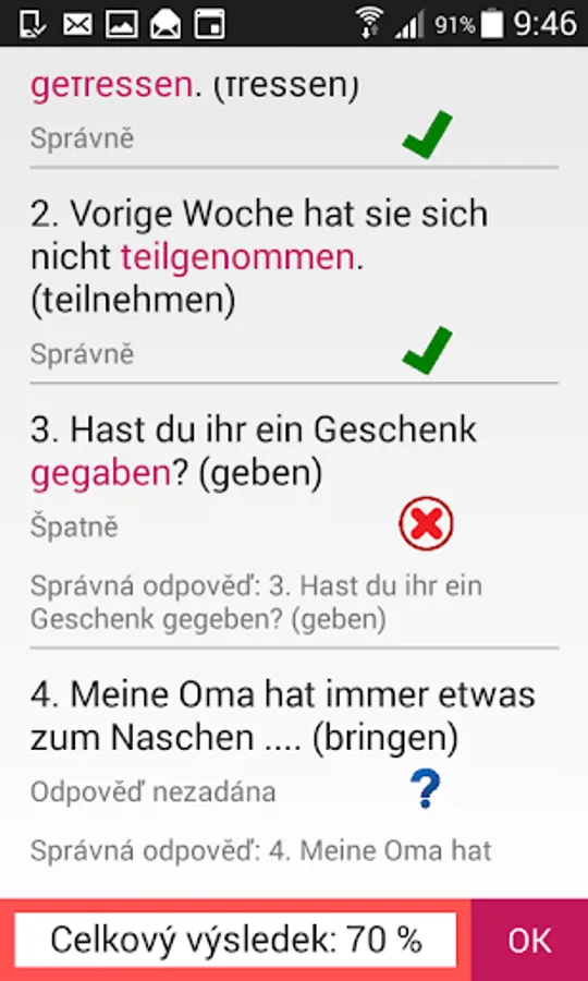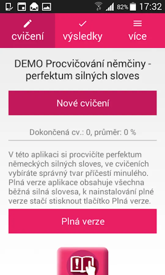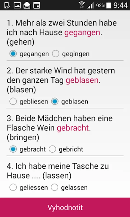 Practice quickly and easily German strong verbs. Applications - demo version contains a selection of commonly used German strong verbs and always randomly generated exercises of ten tasks. Selected participle form of the two options after evaluating instantly see how you fared, while wrong answers appear right solution. Tests are similar to those used in schools.