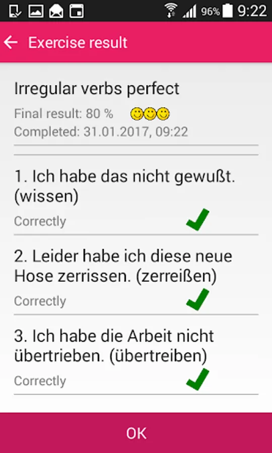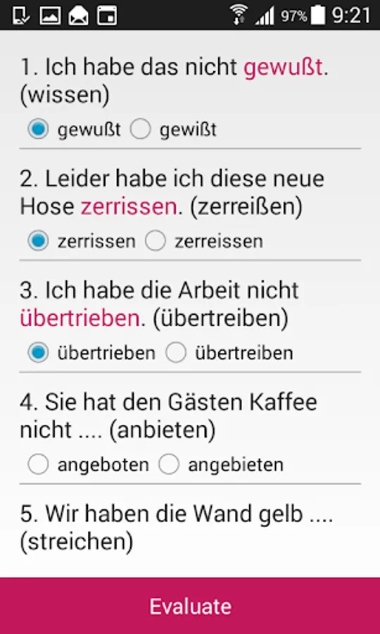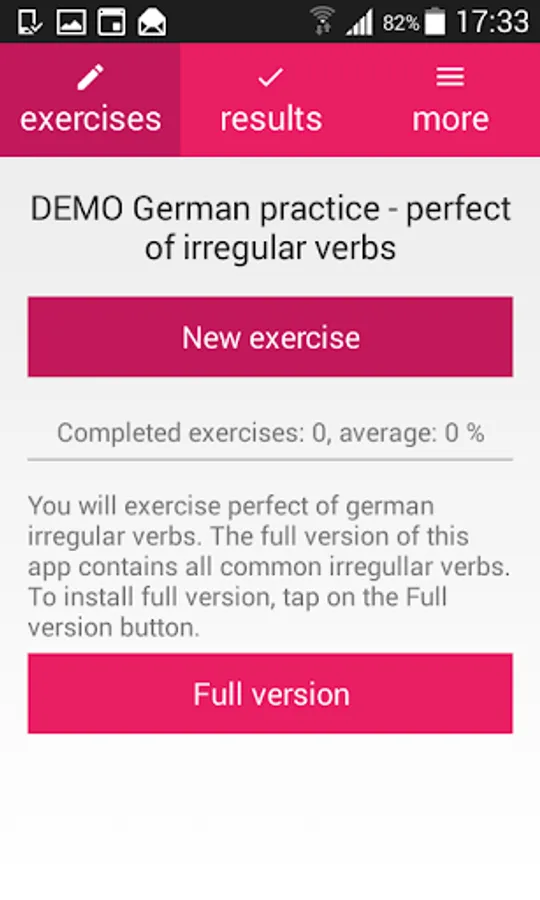 This app is the free example. To exercise all common german irregular verbs, tap on the Full version button in the application.