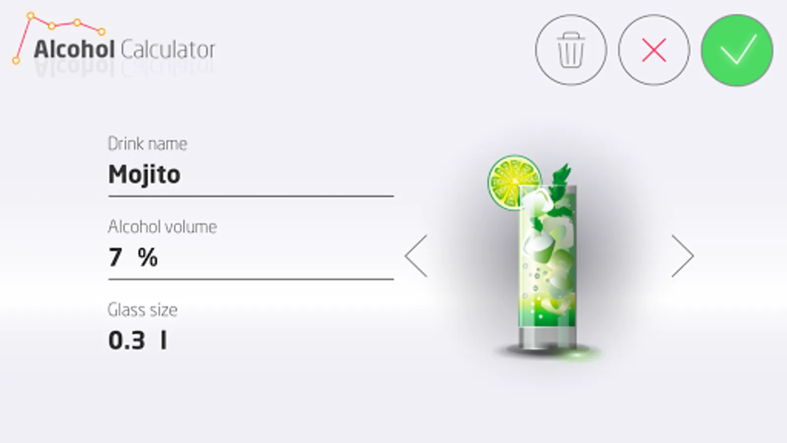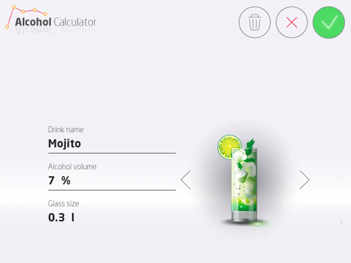 The BAC Alcohol Calculator allows you to edit your favorite beverages, so you can customize it to meet your own particular consumption. Do you like beer, distilled beverages or mixed drinks? Are you male or female? Calculate the current blood alcohol content and the time when you reach zero.