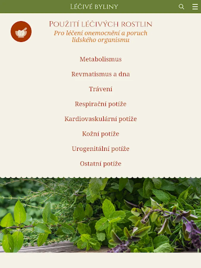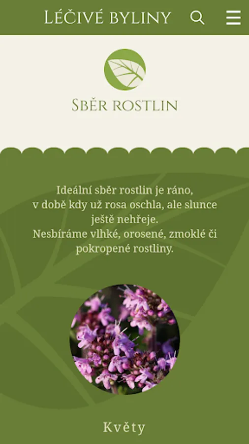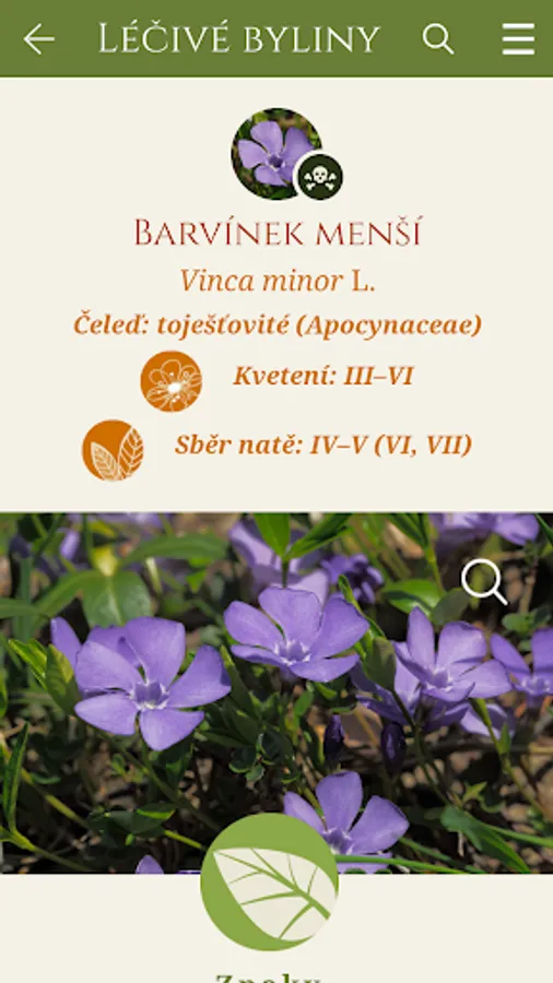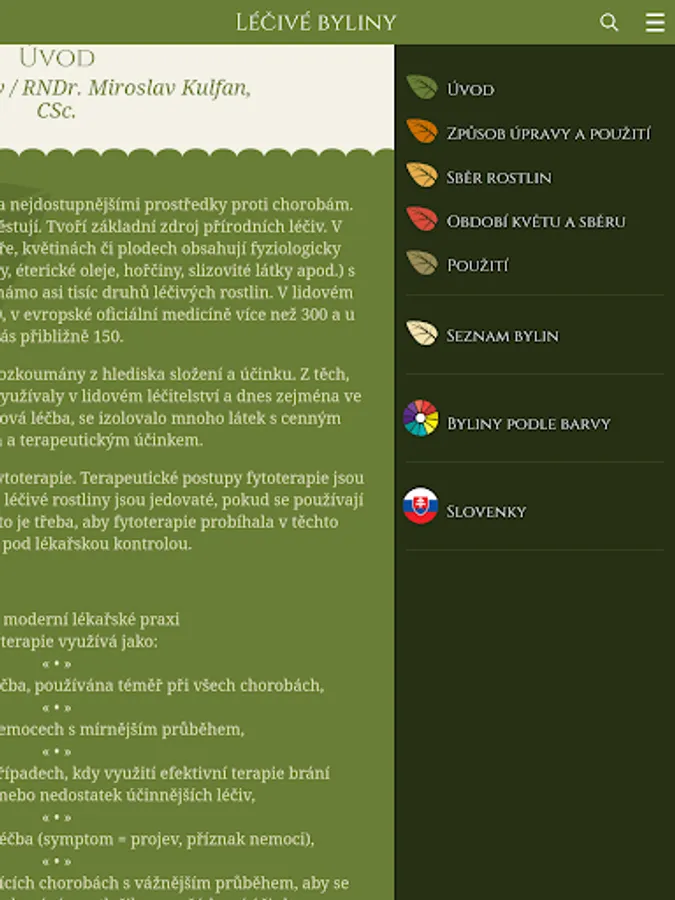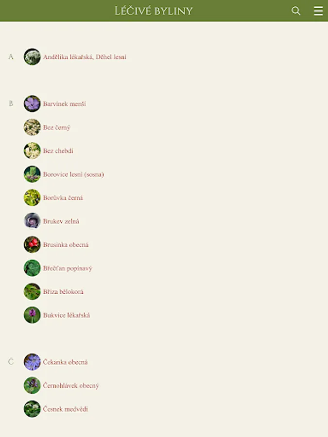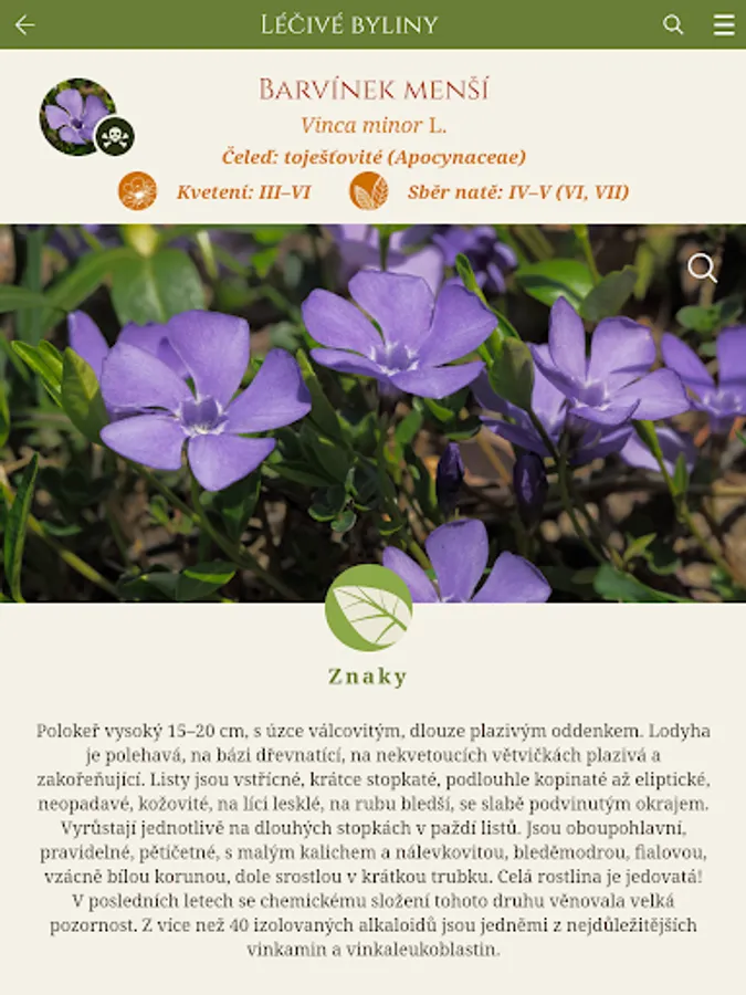 The application is not only herbarium herbs, but also contains tips and advice for the collection and use of medicinal herbs. Here you will find what works various herbs, but also vice versa, ie. On what disease it is appropriate to use the correct treatment (tea, wrap, bath).