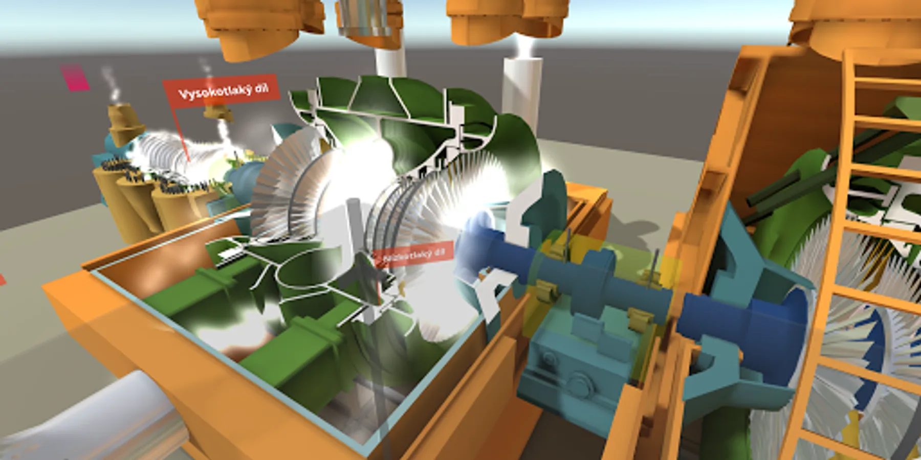 The “VR Nuclear Power Plant” application will show you 3D models of the most important nuclear power plant devices using a simple smartphone and simple VR glasses (cardboard). For example, you can admire the view from the gantry crane to the reactor hall, the animation of the steam flowing through the low-pressure part of the turbine, or the fuel cartridges in the core of the nuclear reactor. Each time you turn your head, the scene seen in your glasses also turns around, enhancing the feeling of being in the scene you're viewing. The experience is further enhanced by a system of teleports that allows you to move to a new observation point and enjoy the scene from a different perspective. The models on the stage and their parts are complemented by information flags so you know exactly what you are looking at. Cognition of energy equipment probably could not be more illustrative.