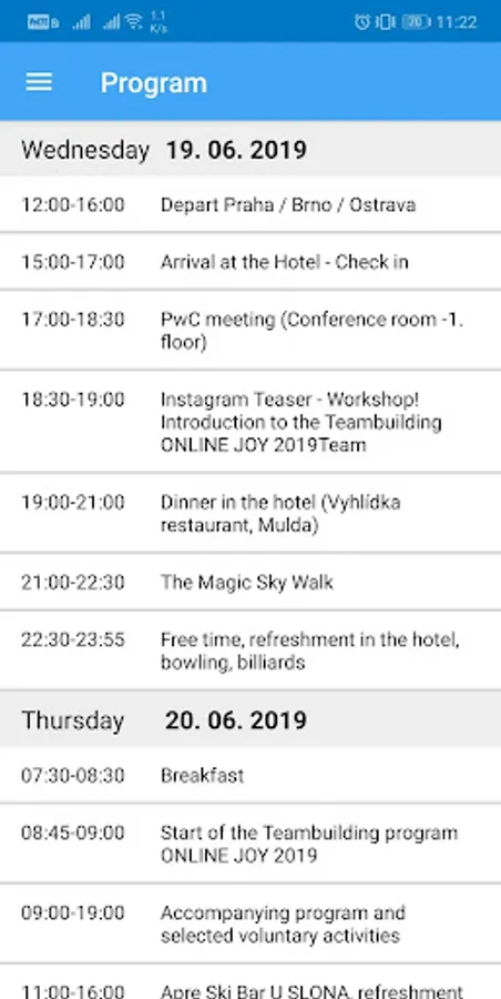 Get an overview of all happenings you're invited to. Easily navigate to the location, find important contacts, vote during the event, and always know where to find all the important information.