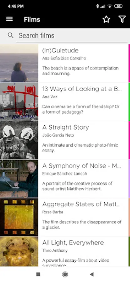 We are delighted, then, to be able to welcome audiences for in person events once again, and in addition to our usual festival venues (Rivoli, Passos Manuel, Planetário and Casa Comum), we will welcome two new ones: a recently reopened neighbourhood cinema, Sala Estúdio Perpétuo, with a focus on new Portuguese documentary and School Trip screenings, and the AGEAS Coliseum for the closing night with the video installation and musical performance "As Filhas do Fogo" by Pedro Costa and the Músicos do Tejo.