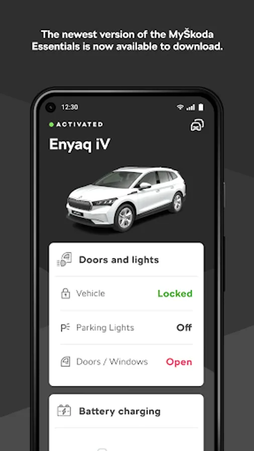With MyŠkoda Essentials you can immediately check the battery charge status, and you can even remotely control the charging and climate control features, including setting up the charging limit or setting up departure timers for AC.