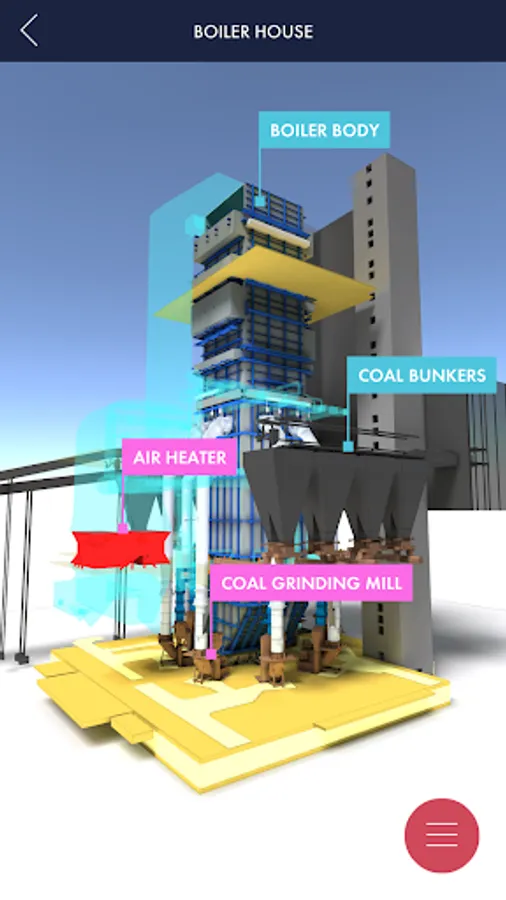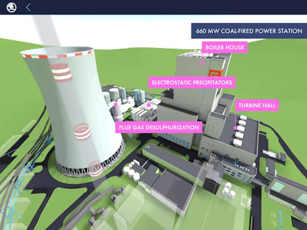 The technology of coal-fired power plants is presented on a model of a modern New Source of the Ledvice Power Plant. In the introductory section, you can familiarise yourselves with the layout of the entire power plant, by selecting highlighted objects you get deeper and deeper via equipment complexes up to individual pieces of equipment that comprise key nodes in the technological connection of the power plant. This information level contains a detailed 3D model of selected equipment and a multitude of supplementary information. In addition to a design aspect and visualisation of the functionality of equipment, it includes information concerning theoretical bases, particular installation of equipment, galleries and interviews with operating staff or an opportunity to try solving practical tasks and interactive problems.