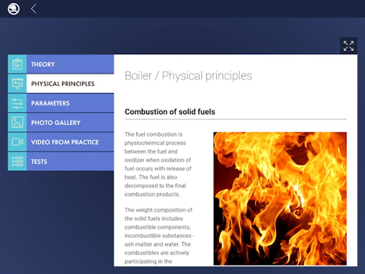 Physical principles – the information window acquaints users with the facility in terms of the use of basic physical principles and processes. The physical principles also include basic formulae characterising the process concerned.