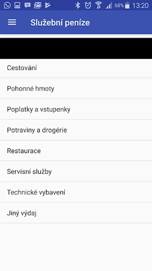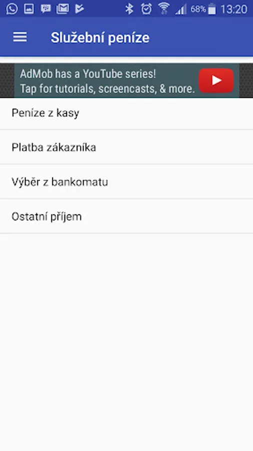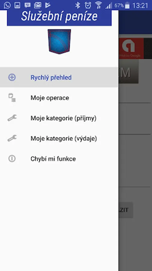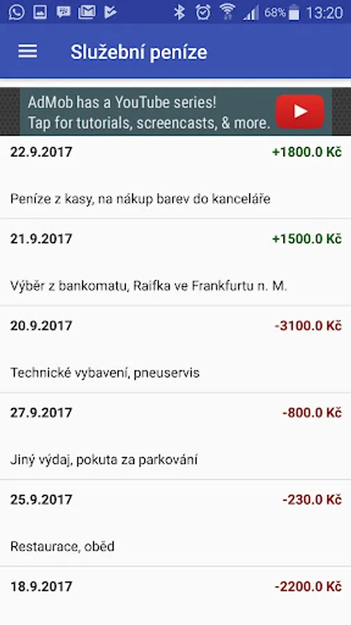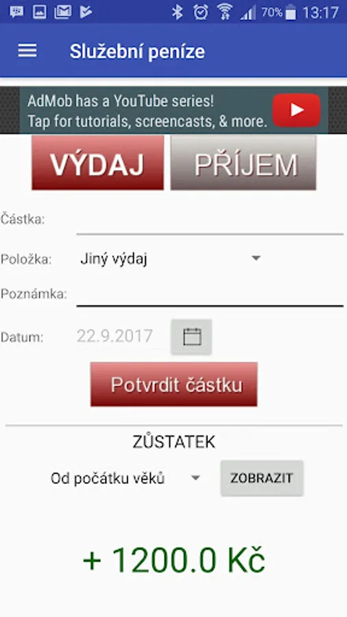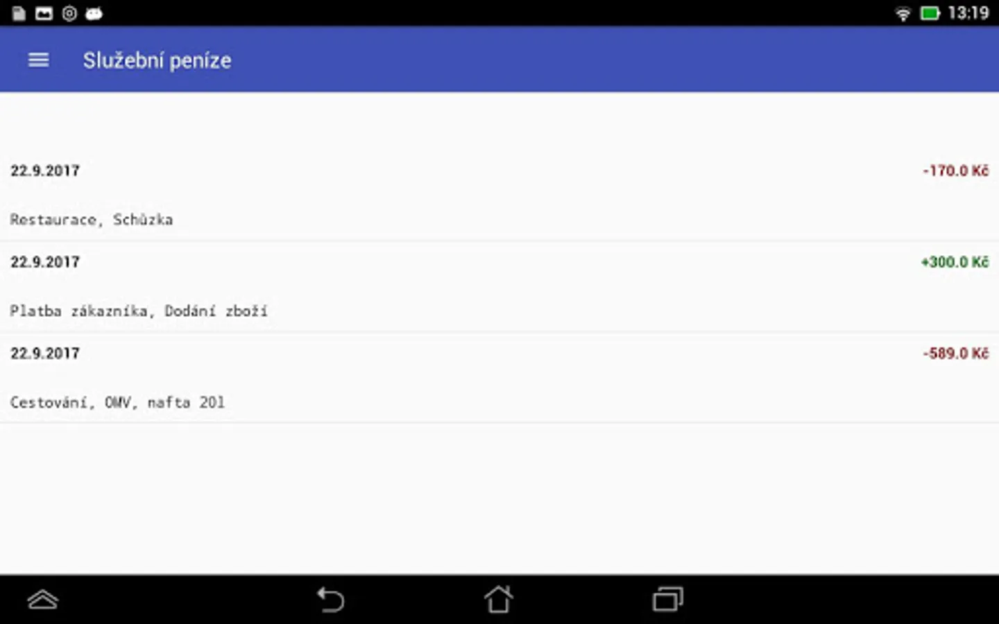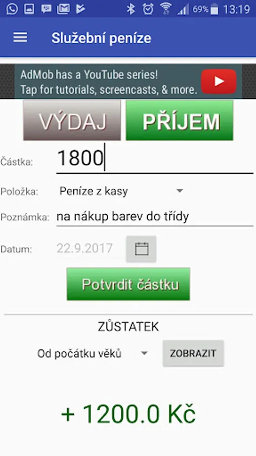The application offers quick account of income and expenditure, including immediate display of the balance.