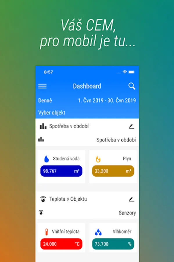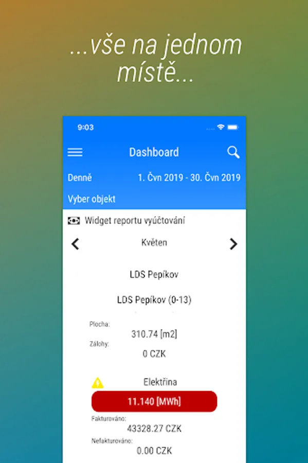 Shows energy consumption reports, module, sensor, object, cost, and billing reports.
