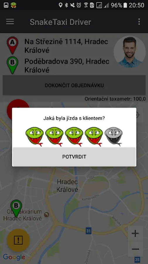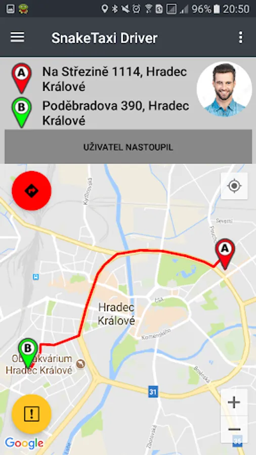 Aplikace SnakeTaxi Emergency Driver has a button which, when pressed with your request for help, along with your current location is sent to drivers and all relatives while on the phone to your manager.