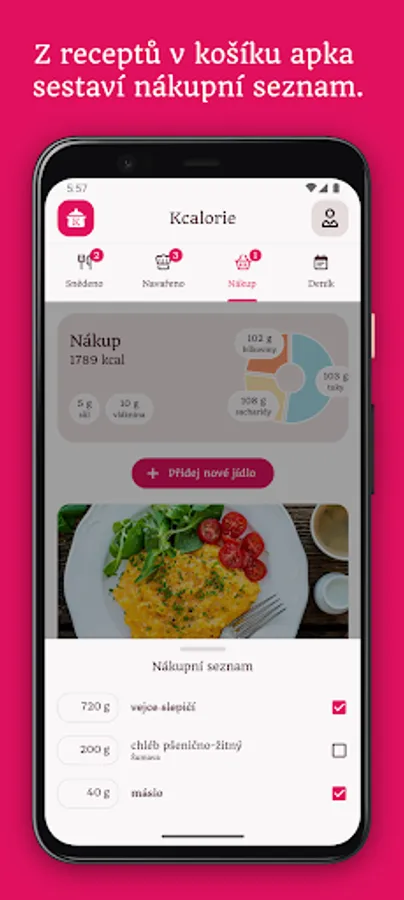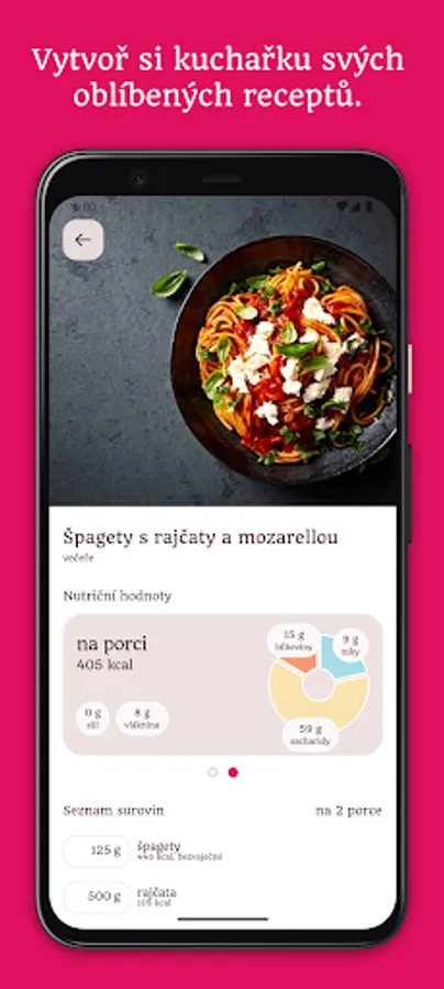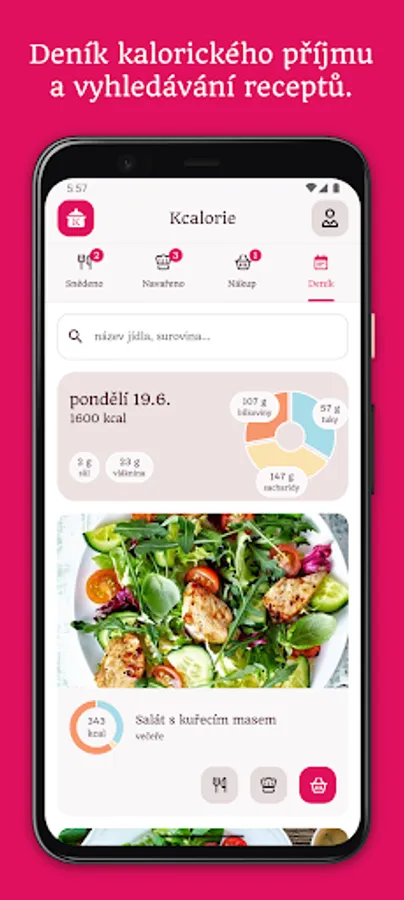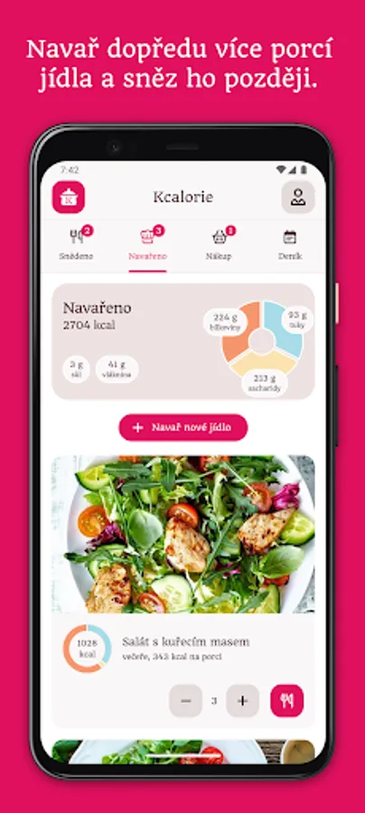 A purely Czech app, a helper for planning a balanced meal, buying ingredients for cooking and an overview of calories and nutritional values of recipes.