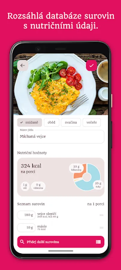 The nutritional data comes from the Institute of Agricultural Economics and Information, but also from the users themselves. If an ingredient is missing, you can fill in its nutritional value and after approval it will be displayed to others.