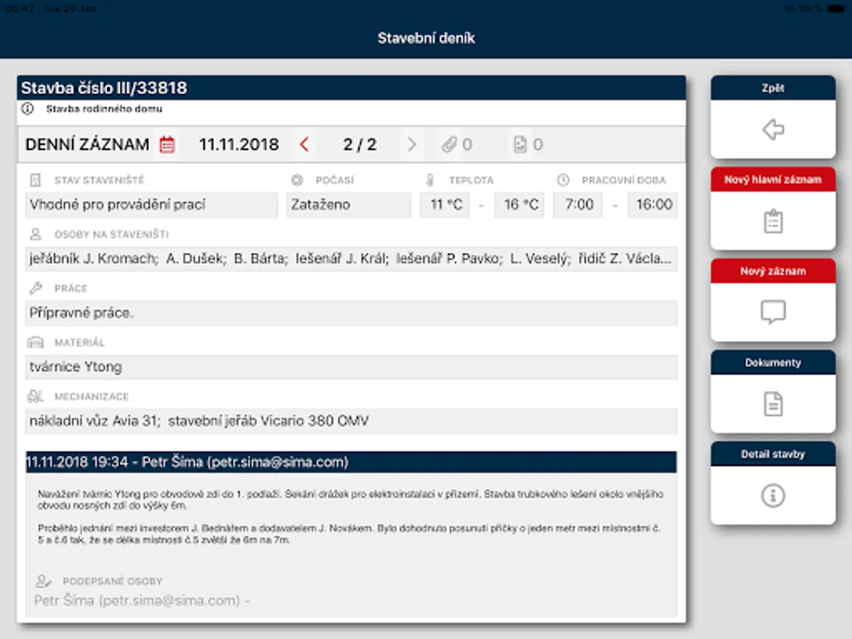 STAVEE is a modern electronic cloud service for building a diary. Instead of writing paper to your tablet. The captured data is securely stored on the server. You can even attach photos of them to the building. Thanks to a modern solution, the building log is available anytime, anywhere. And it never gets lost, does not burn, it does not fall into the mud. The suspicion of the record is practically impossible compared to the paper version.