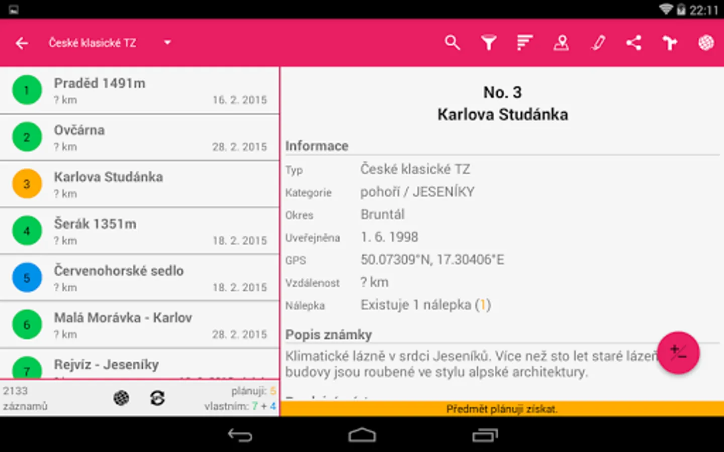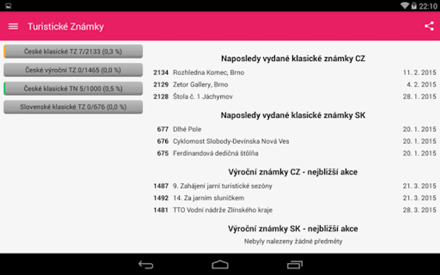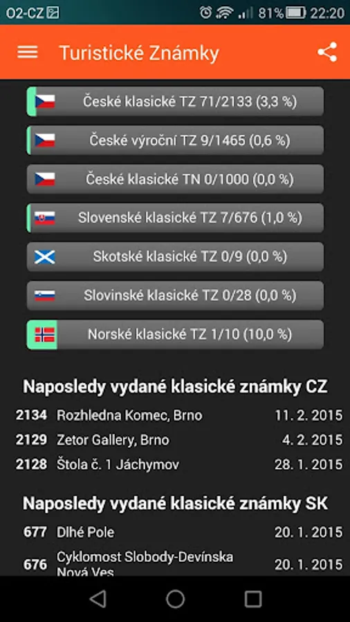 - ruční nebo automatická synchronizace sbírky s webem www.turisticke-znamky.cz přes oficiální API