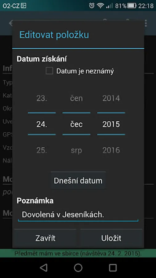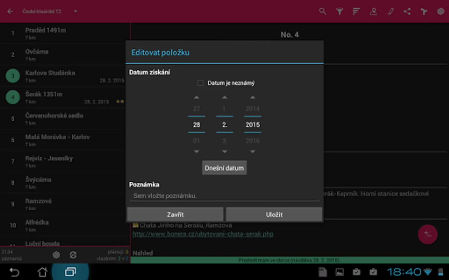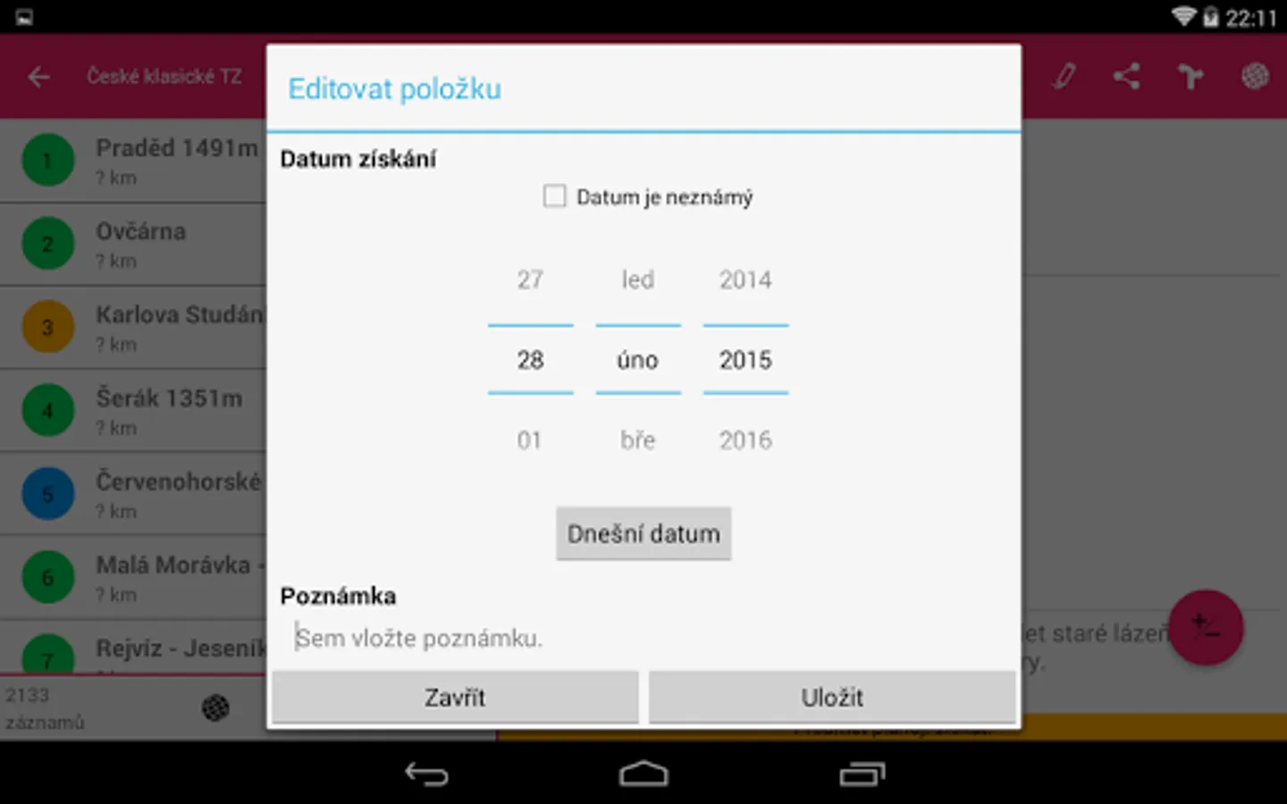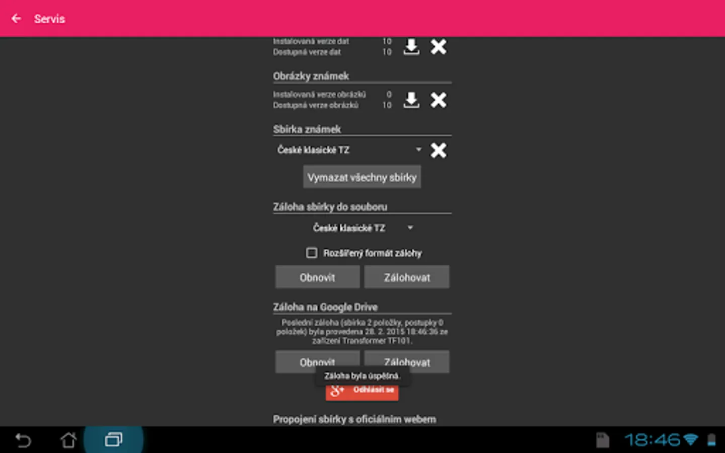 POZOR! Aplikace není kompatibilní s novým webem turistických známek! Po jeho zprovoznění nebude fungovat synchronizace sbírky, pořizování důkazů Byl jsem zde a v aplikaci se nebudou objevovat nově vydané sběratelské předměty.