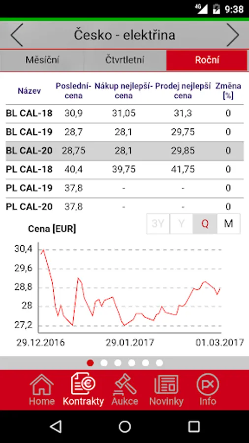 Applications mPXE offers actual data from trading in electricity and natural gas on the exchange platform POWER EXCHANGE CENTRAL EUROPE. The online mode is connected to the trading system and allows the current best bid and ask price and closed stores. The user has the choice of contracts to follow, as well as setting the conditions for notification when the price changes. There are graphs of price trends. If the user is a paying customer exchanges Instantaneous receives data directly from the trading. For the general public are available free of charge data delayed 15 minutes. The application also offers tracking auctions of electricity and natural gas to end customers, including online monitoring of ongoing auctions. It also allows to model the evolution of prices, which would probably reach the consumer, if the auction.
