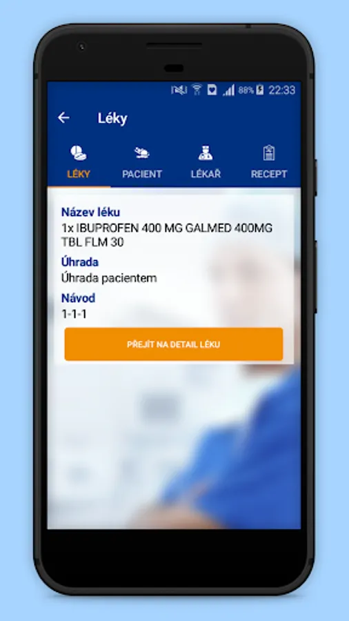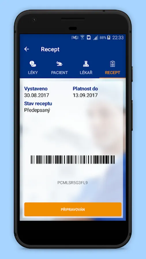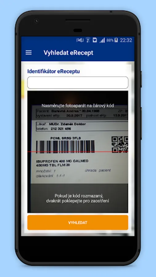 The application is used to retrieve a recipe from the central repository of electronic prescriptions by its identifier or by reading the barcode on the patient eReceptu.
