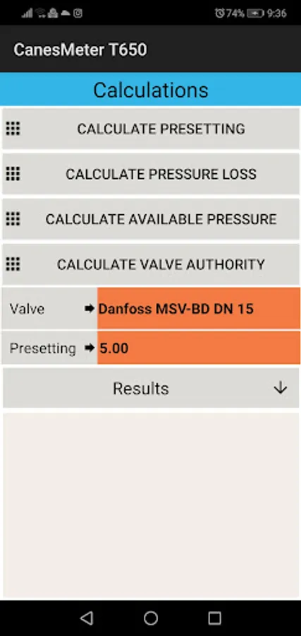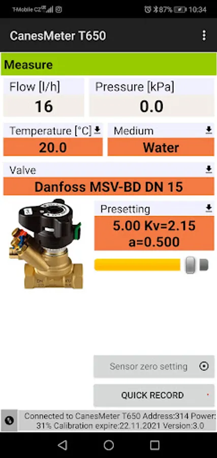 CanesMeter T650 android aplication for pressure unit.