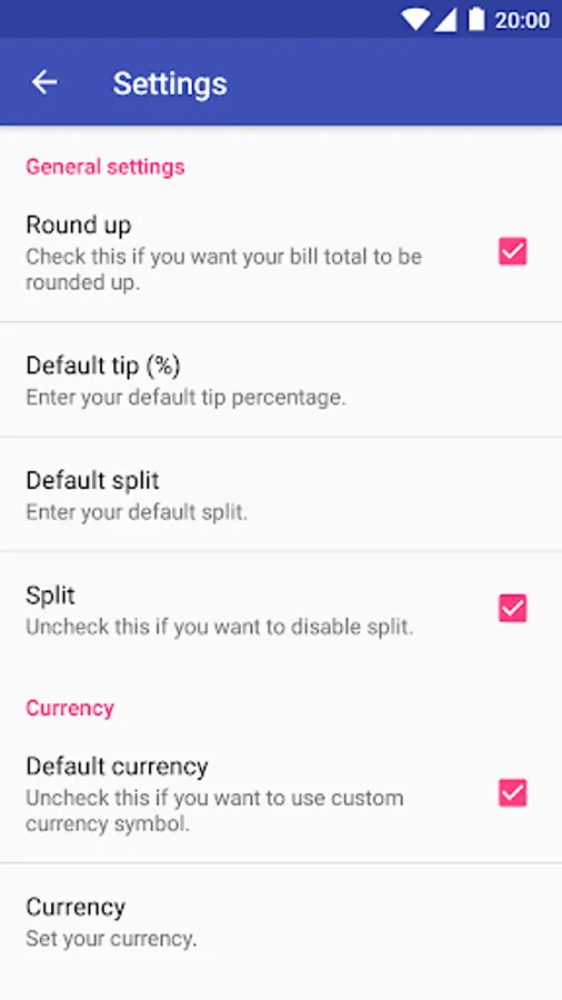 • Sync settings to your smartwatch (default tip, default split, currency)