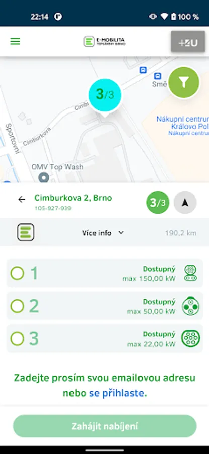 Thanks to our application, you can conveniently recharge your electric car in the network of charging stations E-mobility of Teplárna Brno in lucrative locations throughout Brno. Download our app and you won't need anything more to recharge. In addition to trouble-free charging, you can also use the application to find out the location of stations, their occupancy and the entire history of your charging.