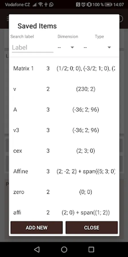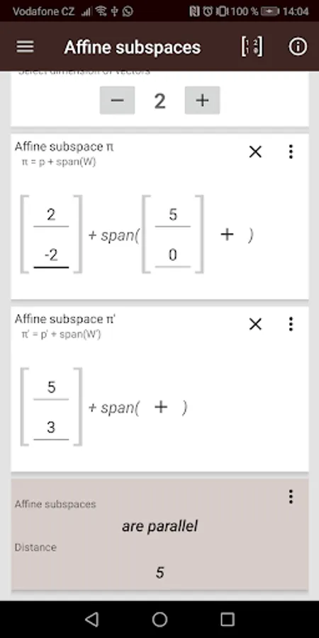 - Saving of Vector, Affine subspaces, Vector subspaces, Matrix