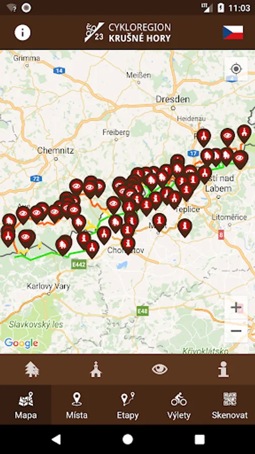 Border cykloregion form a network of nearly 600 km circular bike, joined the new, well-marked passages. The jumpers are easily recognizable by sticky notes, on which is located one half under number 23 Krušnohorská known indications of the highway, then the second orange logo cyclist who is cycling route Saxon. Twelve jumpers connecting the aforementioned main cycling routes border areas and offers a truly diverse range of trips for demanding athletes and "festive" cycling enthusiasts. The application will come close information about this unique region to visit and suggestions of routes of varying difficulty.