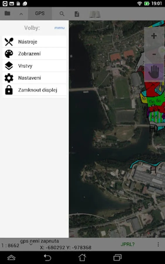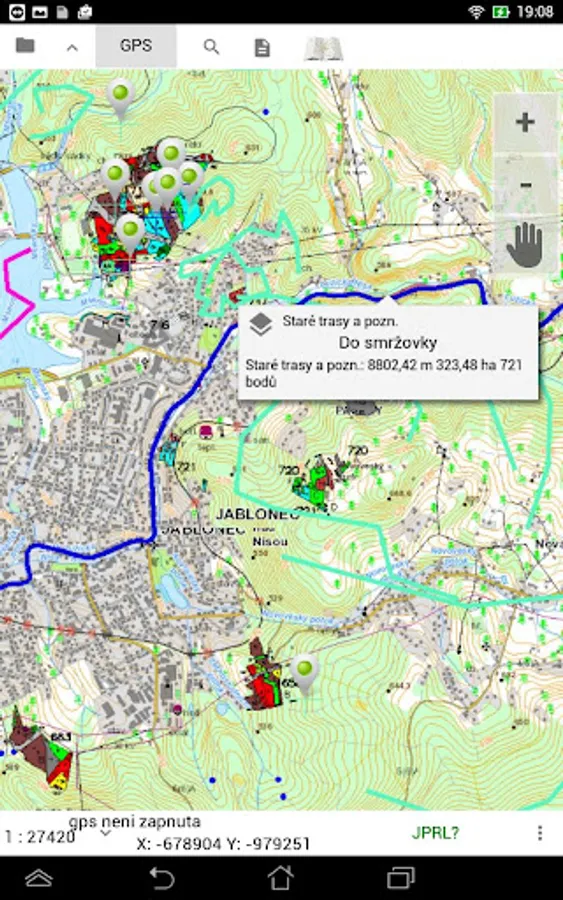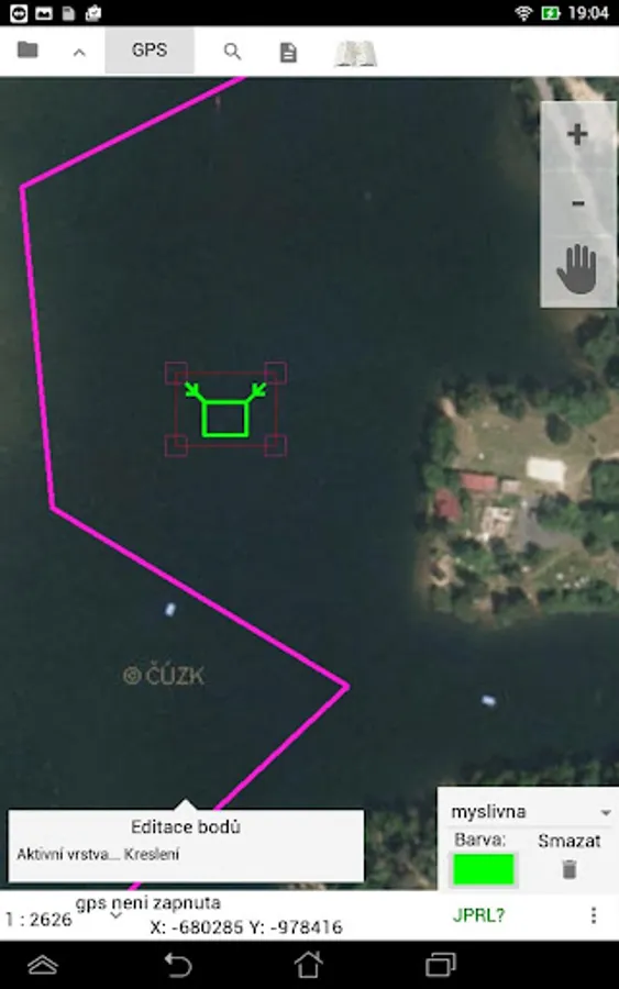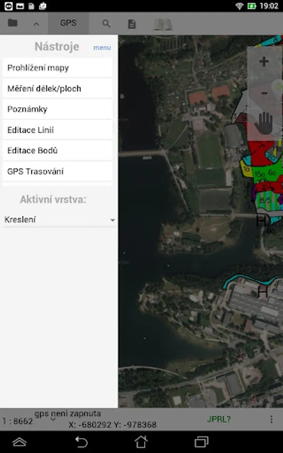 Použitý coordinate system for viewing geographic bases is S-JTSK.