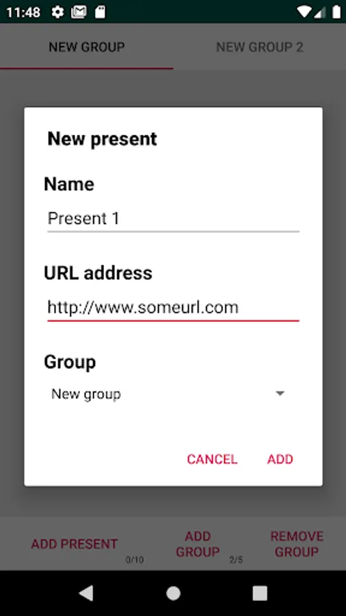 Since version 1.5.0, you can also simply manage your christmas presents in this app. You can create up to five groups (e.g. one for each of your family members) and up to 10 presents in each of them.