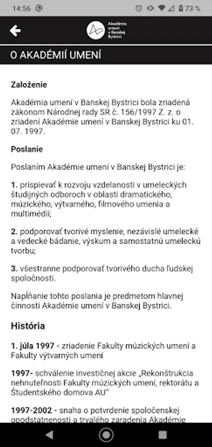 The Academy of Arts in Banská Bystrica, based in Banská Bystrica, is a public university. The academy offers arts education in all three levels of higher education.
