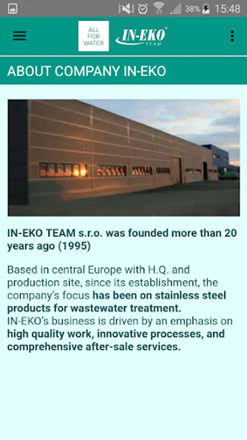 Founded more than 20 years ago, IN-EKO TEAM s.r.o. is located in Central Europe, where its manufacturing facility is also located. Since its inception, the company has been focusing on the production of stainless steel water management systems for wastewater treatment. The foundation of our business is the emphasis on high-quality work, innovative processes and comprehensive after-sales services.