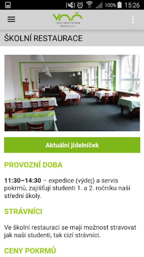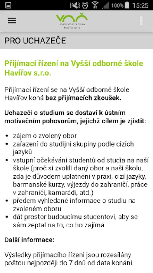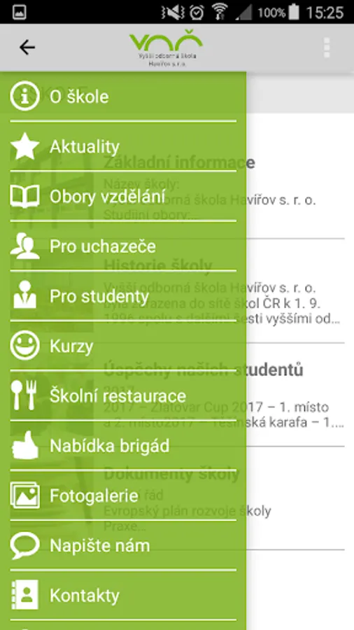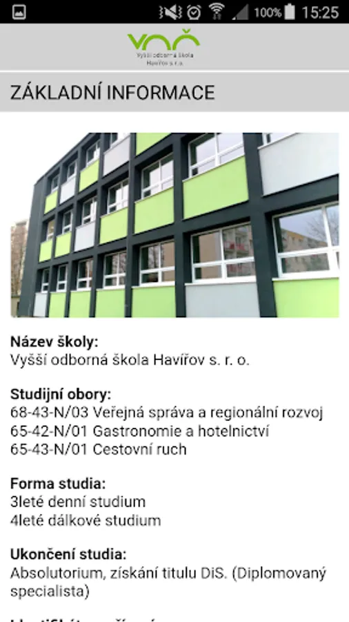 Mobile Applications Higher School Havirov provides important information about the school - the fields of education, courses or school restaurant. The application offers quick calls, writing e-mail or navigation. Also, refer to the contact form, photo gallery, all contacts, important documents and links.