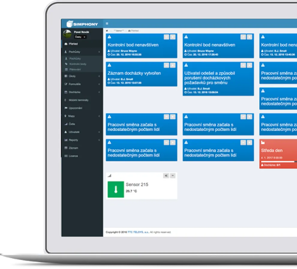 Loneworker system according to BS8484 specification (British Standard - Code of Practice for the provision of lone worker device services). The system provides automatic alert SMS messages, phone calls and server alarms. The application detects alarm condition using device sensors and panic button.