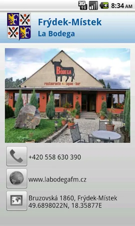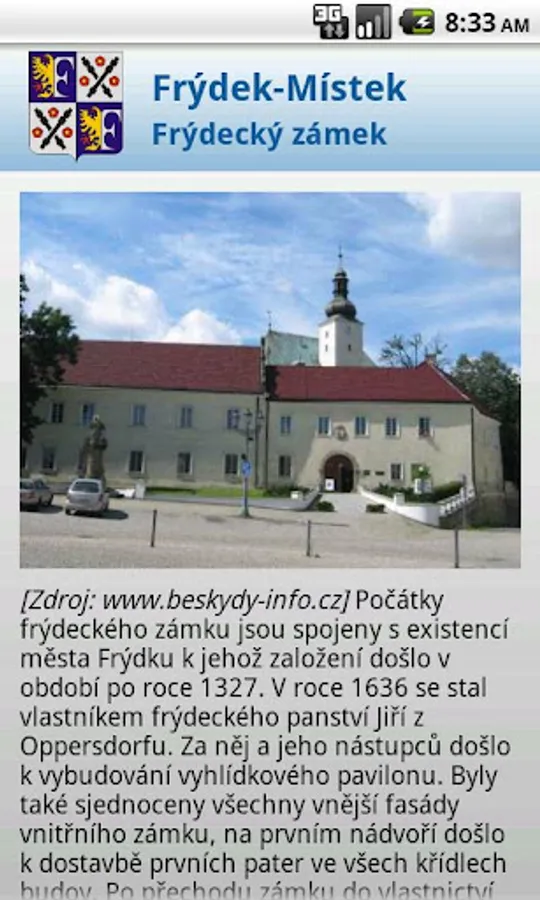 The application is intended for visitors and citizens of Frydek-Místek. Includes off-line information about the history and present of the city, sports, cultural and gastronomic facilities, architecture and institutions in Frýdek-. Objects are sorted by the distance to the user application. After clicking the objetku can be displayed on the map, right there call or see their website.