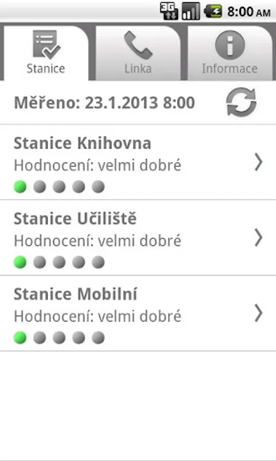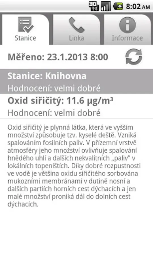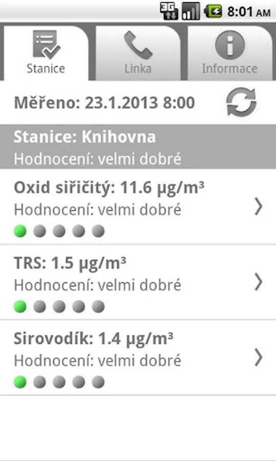 The application shows air quality in Štětí. The user sees the actual measured values for sulfur dioxide, hydrogen sulfide and TRS at three monitoring stations, including the overall evaluation and assessment of individual variables. Using the application, you can also easily contact dispatching Mondi Štětí as on the Green Line.