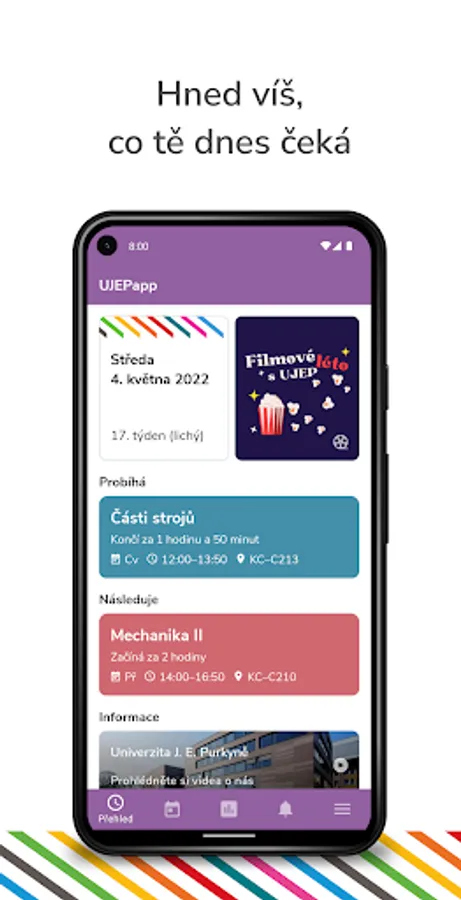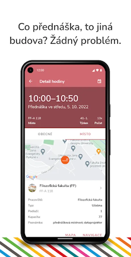 UJEPapp is the official mobile app for students and teachers of Jan Evangelista Purkyně University in Ústí nad Labem. App gives you detailed overview of your studies including a well-arranged timetable, exam date schedule or interactive map of campus. You can enroll or withdraw from exam date anytime. Also, you will get a notification once exam result is published in IS/STAG or even when there is a vacant spot within an exam date.