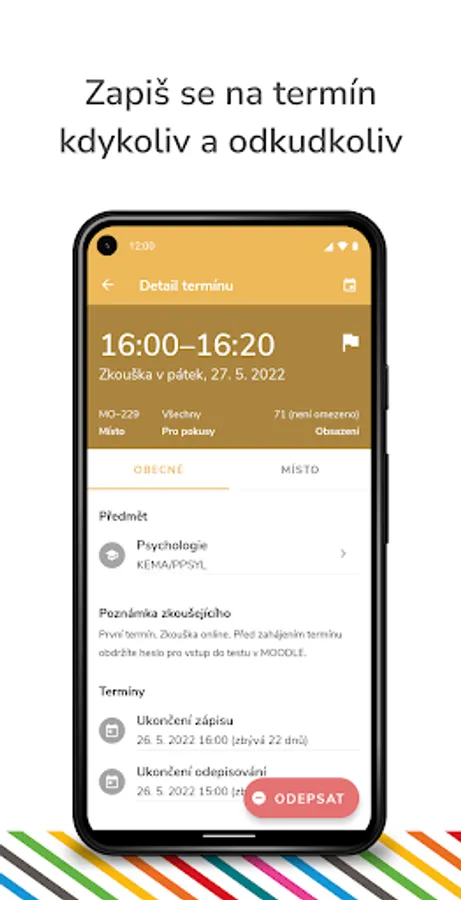 ● notification about new exam date or vacant spot for exam dates
