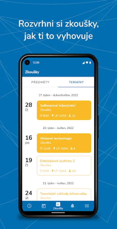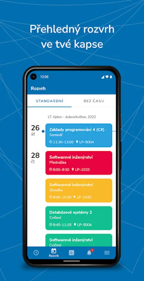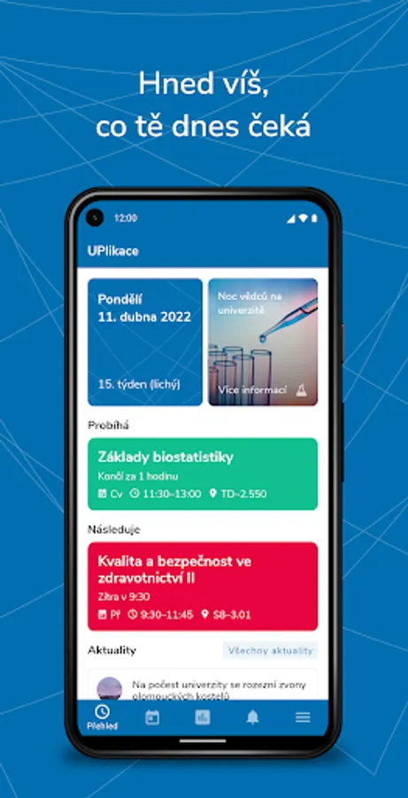 UPlikace is the official mobile app for students and teachers of Palacký University in Olomouc. App gives you detailed overview of your studies including a well-arranged timetable, exam date schedule or interactive map of campus. You can enroll or withdraw from exam date anytime. Also, you will get a notification once exam result is published in IS/STAG or even when there is a vacant spot within an exam date.