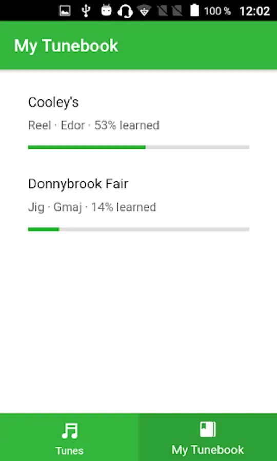 The app also keeps progress of your learned tunes, so you will never forget the tunes you have learned.