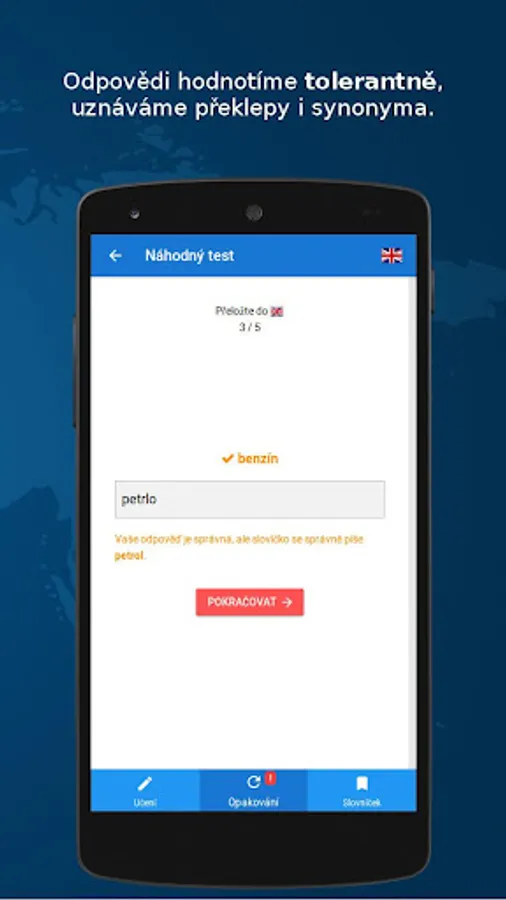 Words are exercising the most efficient way - actively. Translate from Czech to foreign language and vice versa. When evaluating the results of the application is permissive - recognizing even minor typos or errors in most zaměňovaných characters.