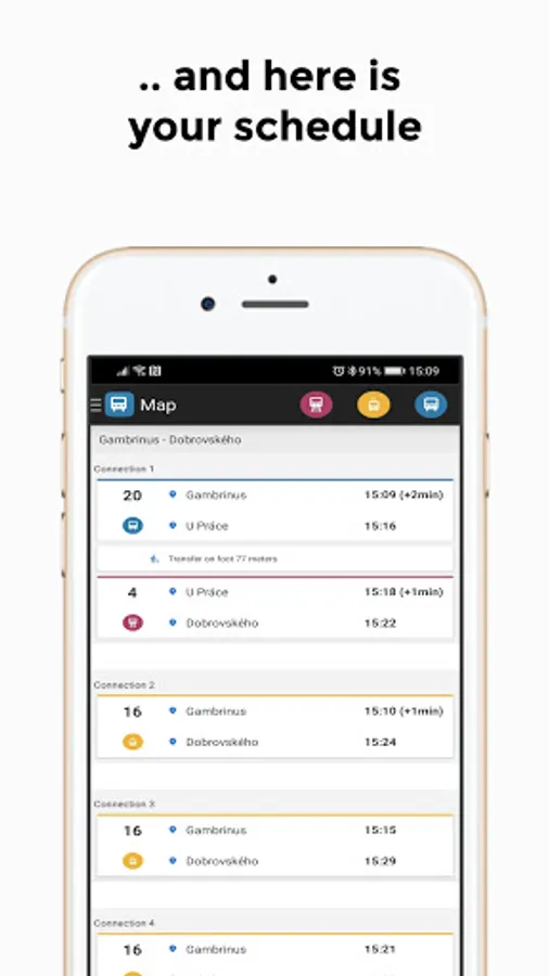 A simple app will show you lines of Plzen´s (City in Czech Republic) Public Transport system and search time plan.